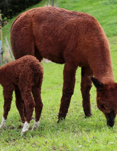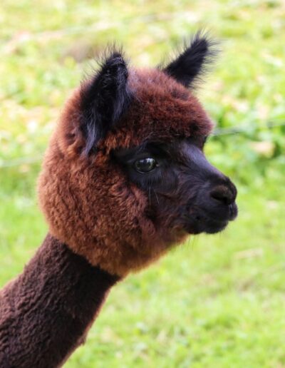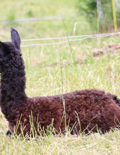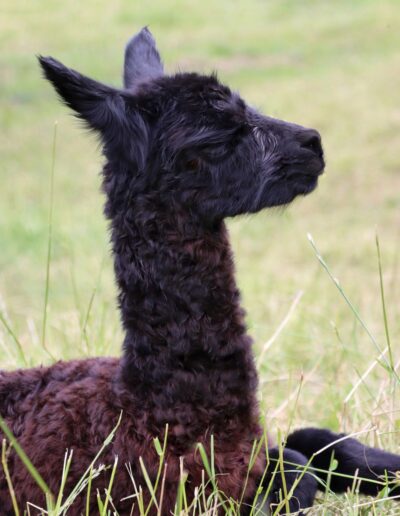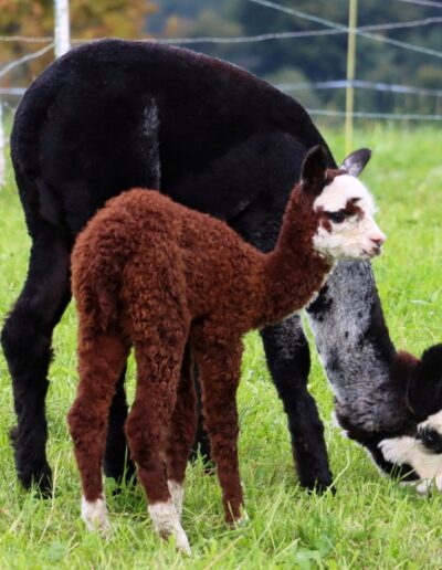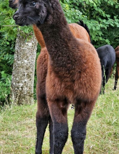 Mit ihrer Farbe ist sie der Hingucker schlichthin. Eine sehr zierliches Cria, aber wenn sie losrennt, kommt ihr niemand mehr hinterher.