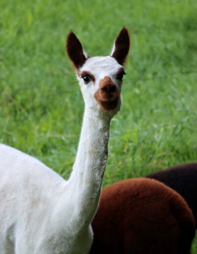 Carlie durfte mit ihrer Freundin Annika am 01. April 2024 bei uns einziehen. Die Beiden sind oft gemeinsam unterwegs und haben sich von Anfang an sehr gut mit den anderen Alpakas verstanden – besonders Naira hat sich in ihr Herz geschlichen. Carlie hat eine sehr ruhigen und eher etwas schüchterne Art. Sie fühlt sich am wohlsten, wenn sie umgeben von ihrer Herde ist.