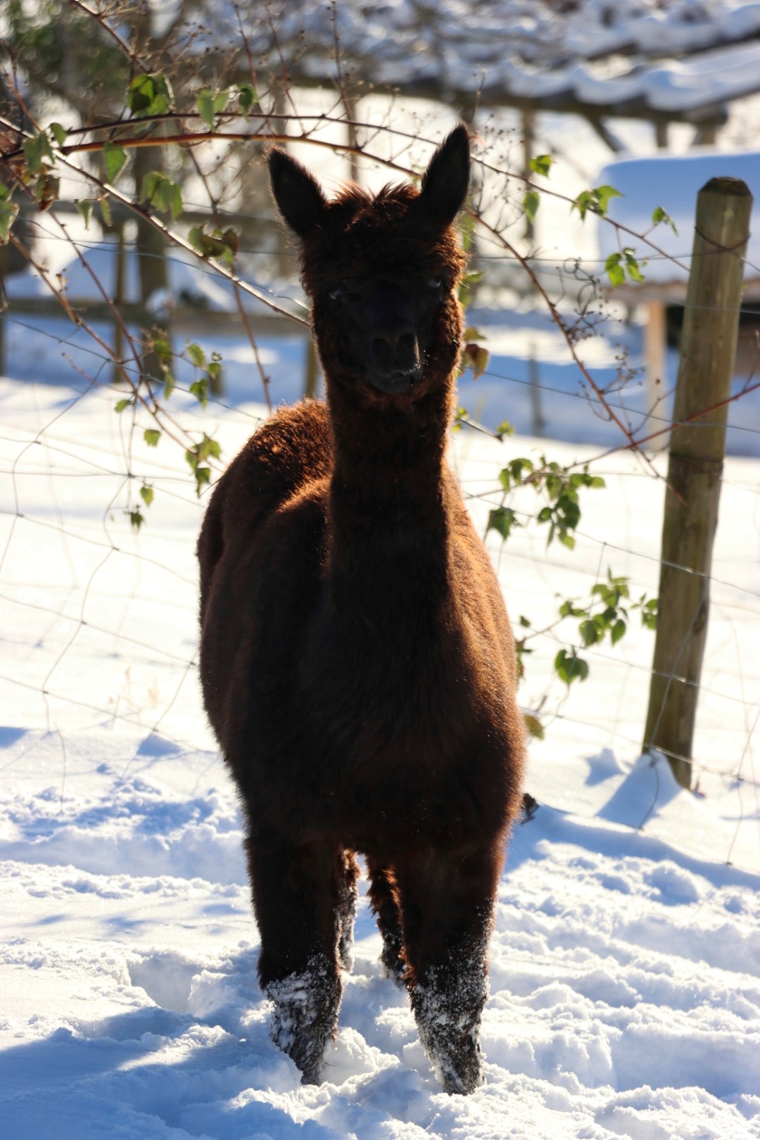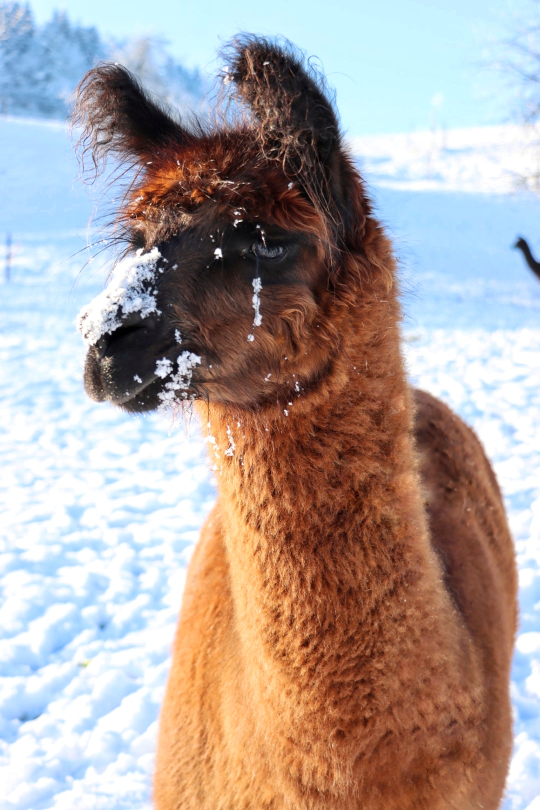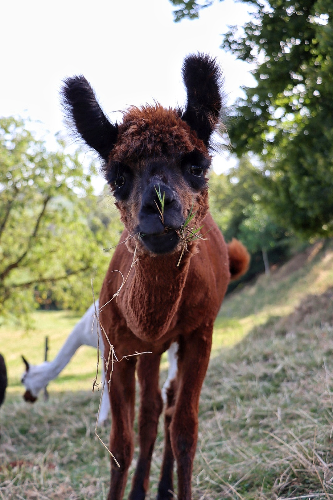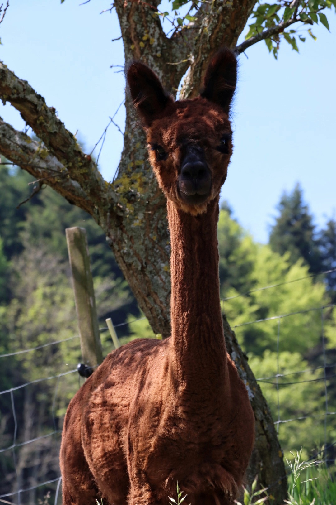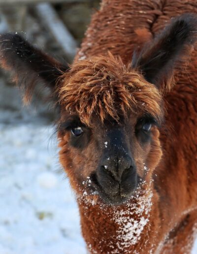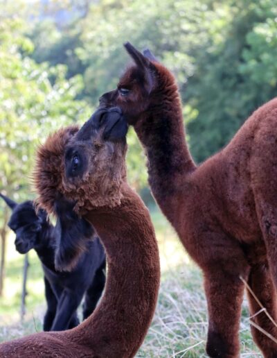 Nanu, wer ist denn hier in mitten der Herde mit Bananen-Ohren zu sehen? Maloja ist unser verschmustes Wooly – Lama und ein Herzensprojekt von Andrea. Sie ist die Beschützerin der Herde, unglaublich neugierig und spielt fürs Leben gerne mit den Crias. Den Kleinen irgendwelchen Unsinn beizubringen steht ganz zuoberst auf ihrer ToDo-Liste – ein richtige Wirbelwind.