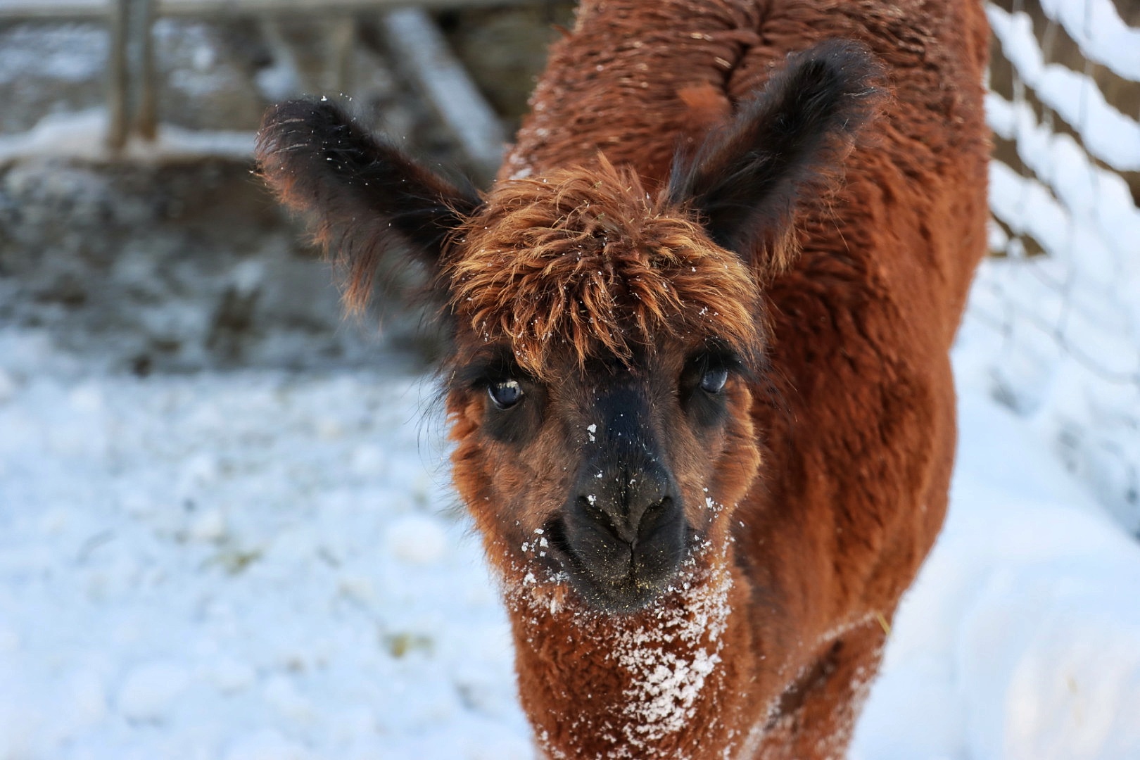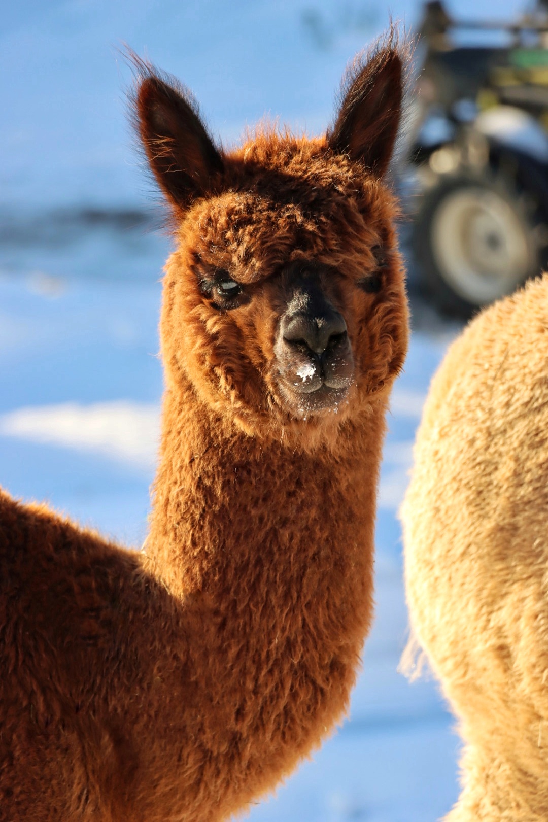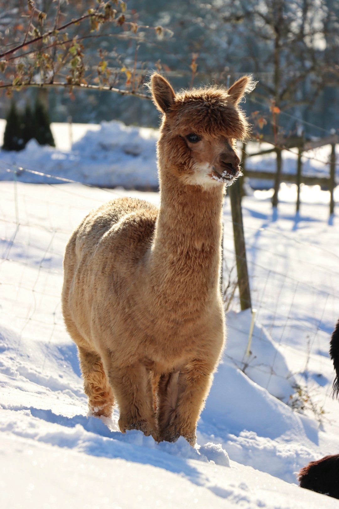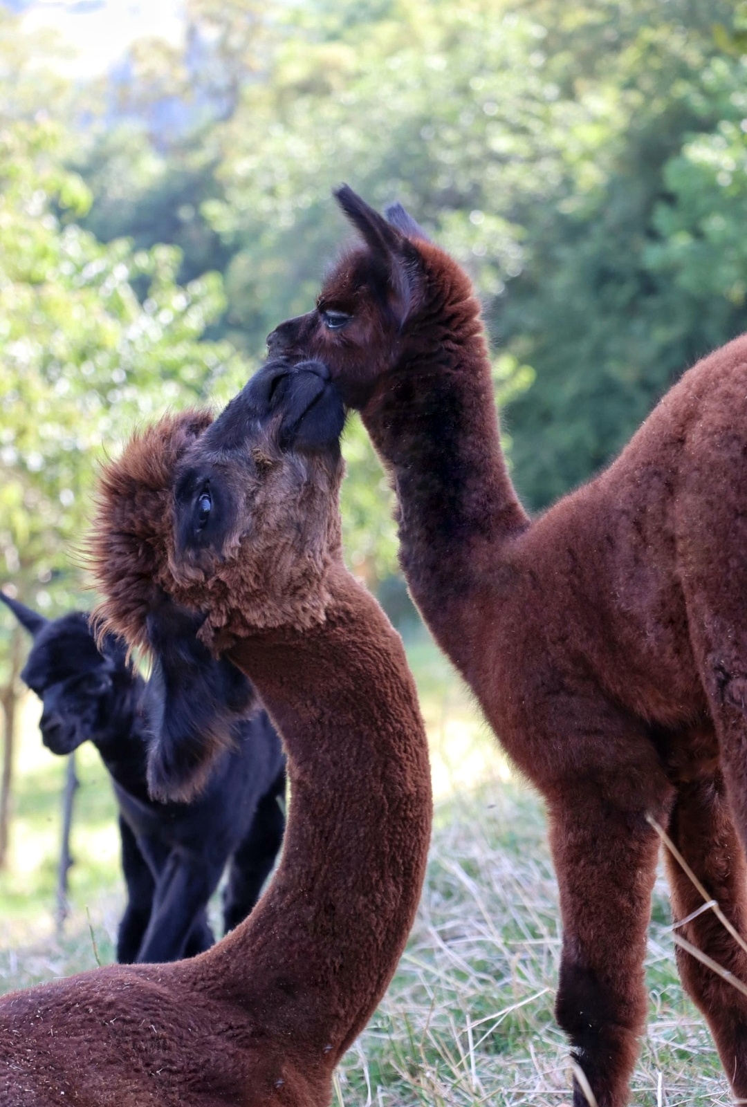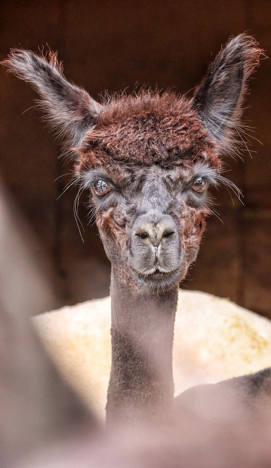 Nanu, wer ist denn hier in mitten der Herde mit Bananen-Ohren zu sehen? Maloja ist unser verschmustes Wooly – Lama und ein Herzensprojekt von Andrea. Sie ist die Beschützerin der Herde, unglaublich neugierig und spielt fürs Leben gerne mit den Crias. Den Kleinen irgendwelchen Unsinn beizubringen steht ganz zuoberst auf ihrer ToDo-Liste – ein richtige Wirbelwind.